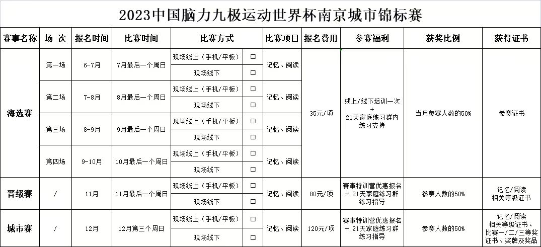 南京城市脑力运动会,是指在总体的思想框架下,自行实施部署及安排,达到提升学员学能、储备优秀选手、彰显机构魅力的运营举措。