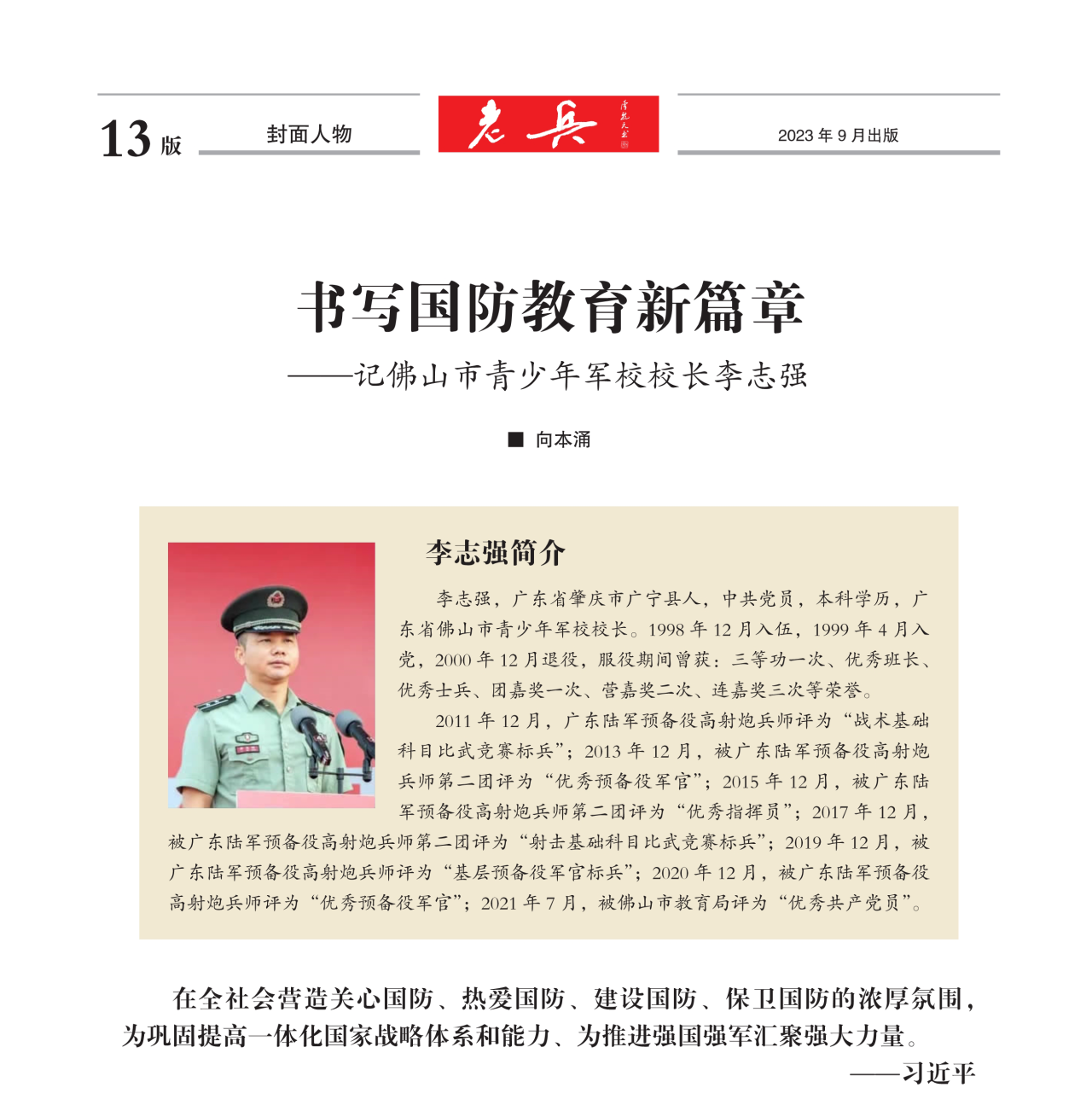 祝贺脑科学课题委员、佛山军校领航人李志强荣登《老兵》封面