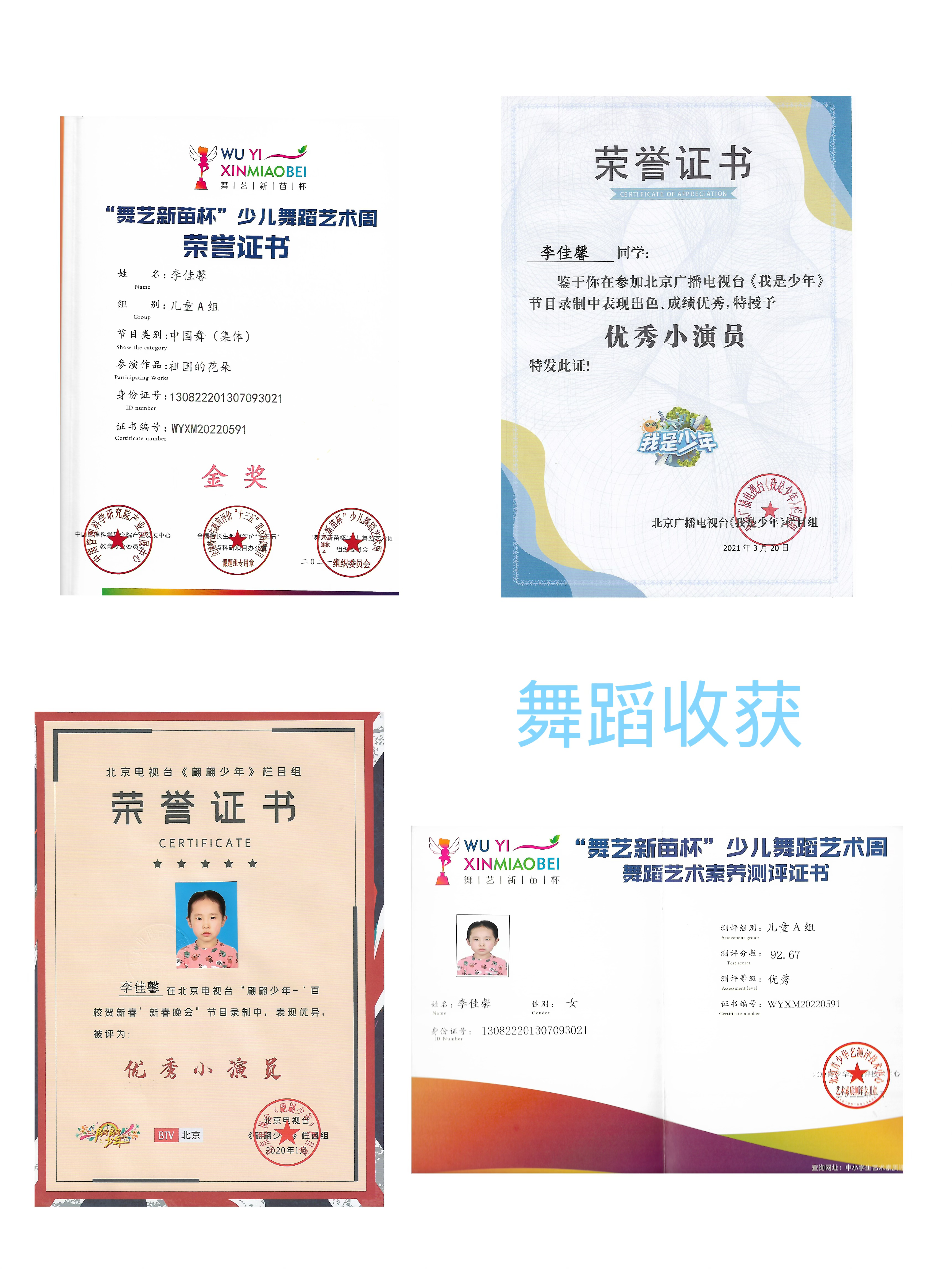 本人热爱科学奥秘,热衷提升创新潜能,希望能有机会与更多的优秀伙伴一起,探讨、学习,研究智慧科学,将来为我们的国家、我们的时代贡献一份力量。 本人学习成绩优异,在日常学习中,我始终保持对学习的热情和专注,成绩名列前茅。除在校学习外,我个人擅长并爱好在全脑记忆,英语,钢琴、美术,书法,舞蹈,表演等各个领域,且长期保持浓厚的学习欲望,并获得各类大赛奖项。 我不仅注重个人成长,还乐于助人,积极帮助同学解决学习难题。我认为,智慧不仅仅是知识的积累,更是解决问题的能力与创新的思维。 人物榜样:我的榜样“两弹一星”钱学森院士,希望长大后我也能为中国航天贡献力量。 人生理想:渴望成为一名航天员,探索宇宙的奥秘。 各项荣誉: 3岁学画画、舞蹈,4岁学钢琴、7岁学书法、乐高 2020年1月: 北京电视台“翩翩少年新春晚会”优秀小演员 2021年:第二十五届全国中小学生绘画书法作品比赛,荣获书法类三等奖 2021年:“ 舞艺新苗杯”少儿舞蹈艺术周中国舞金奖 2021年3月20: 北京广播电视台《我是少年》授予优秀小演员 2023年6月: 北京广播电视台“加油吧少年”荣获优秀小演员! 2023年: 2023致敬徐悲鸿青少年书画大赛金奖 2023年7月:第五届“致敬英雄”全国青少年文化艺术创作主题教育竞赛“描绘我心中的英雄”书法绘画大赛小学高龄组(4—6年级)北京市一等奖 2023年8月:首届全国青少年文化遗产知识大赛书画知识与实践专项赛 全省二等奖 2024年7月:“第二十八届全国中小学生绘画书法作品比赛”绘画二等奖 2024年7月: 全国青少年音乐素养大赛三等奖 2024年10月7日“国际记忆奥林匹克竞赛”业余级别1级 2025年1月:“学院之路·国际青少年艺术作品邀请展 金奖 2025年5月27:中国音乐学院钢琴6级 2025年7月1: 软笔书法考级8级 2025年7月:“第二十九届全国中小学生绘画书法作品比赛”绘画二等奖 2025.07.28日:韩国记忆公开赛“随机词汇儿童组银牌” 2025年:中国美术学院社会艺术水平九级