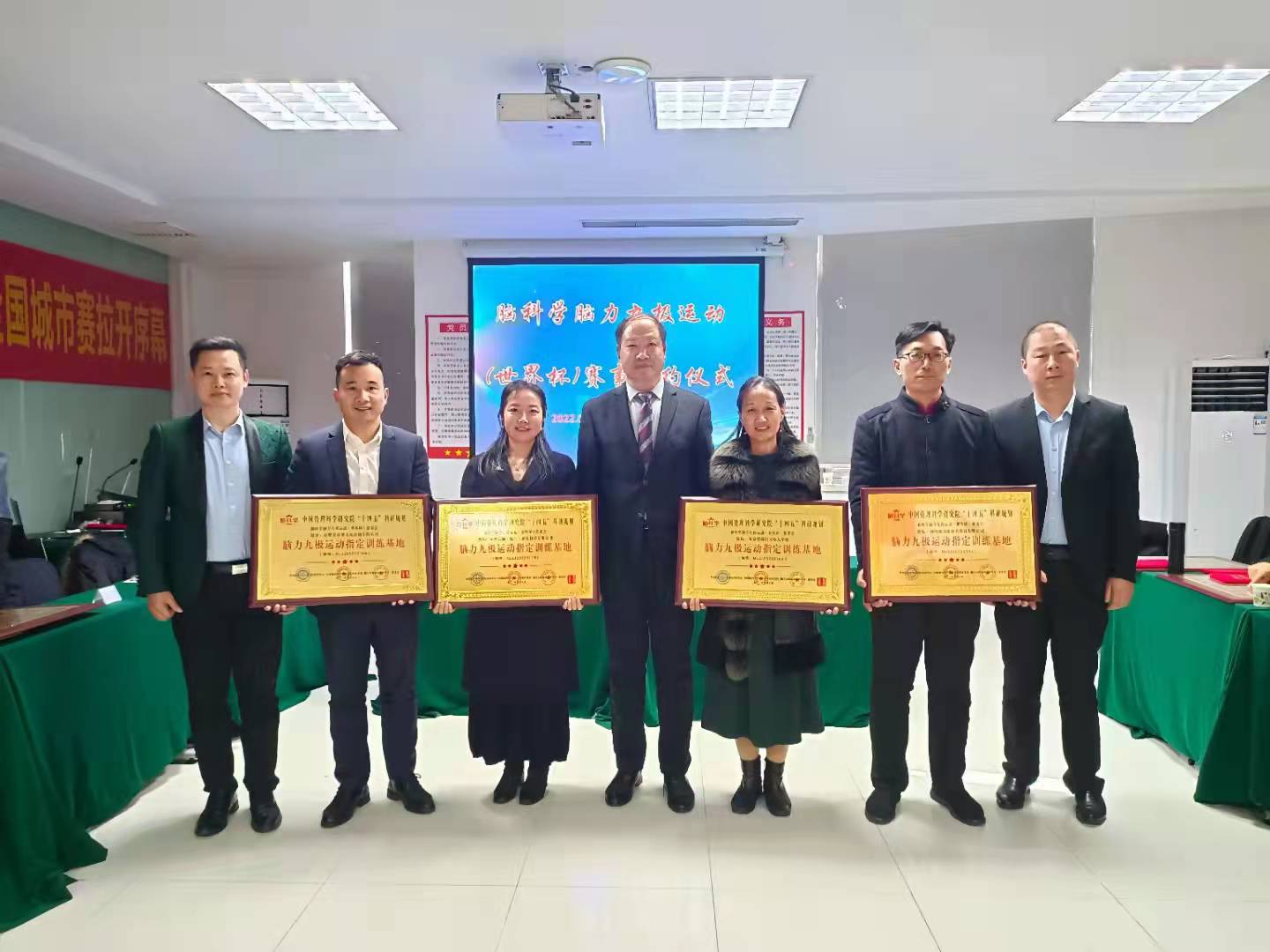 常兴隆裁判长对裁判员进行了初级培训并做严格考核,对于考核通过的学员颁发了裁判“荣誉证书”,对考评通过的机构颁发了脑力九极运动训练基地授权牌。